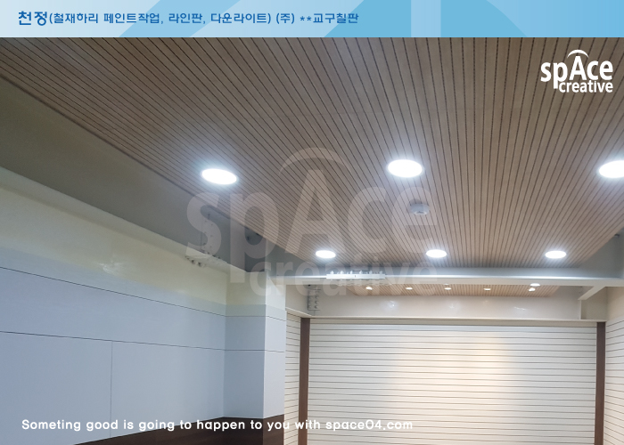 천정 천정(철재하리 페인트작업, 라인판, 다운라이트) (주) **교구칠판
